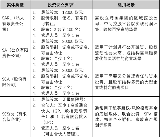 在卢森堡,外国投资设立企业的主要形式分为两种,公司制企业与合伙制企业,常见法律实体的设立要求及适用场景具体见下表。