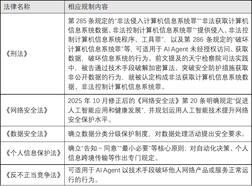 三、中国AI Agent治理的制度基础:现行法律框架的适用与演进