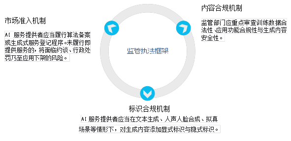 中国对AI技术的监管采取“网信部门统筹、行业主管部门协同”的体制。国家网信办作为主要监管部门,通过以下机制实施监管: