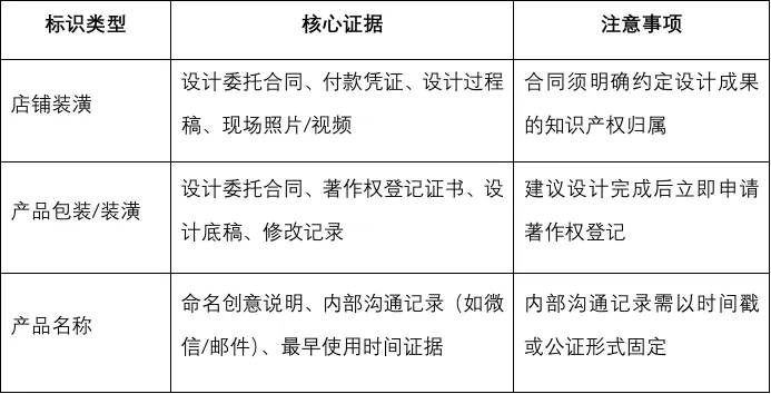 常见失误:委托第三方设计时未在合同中约定知识产权归属,导致权利基础证据出现瑕疵。